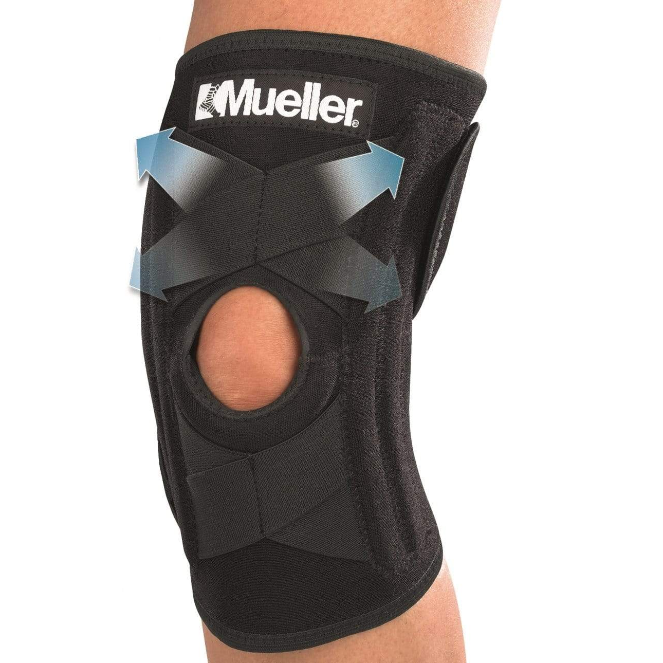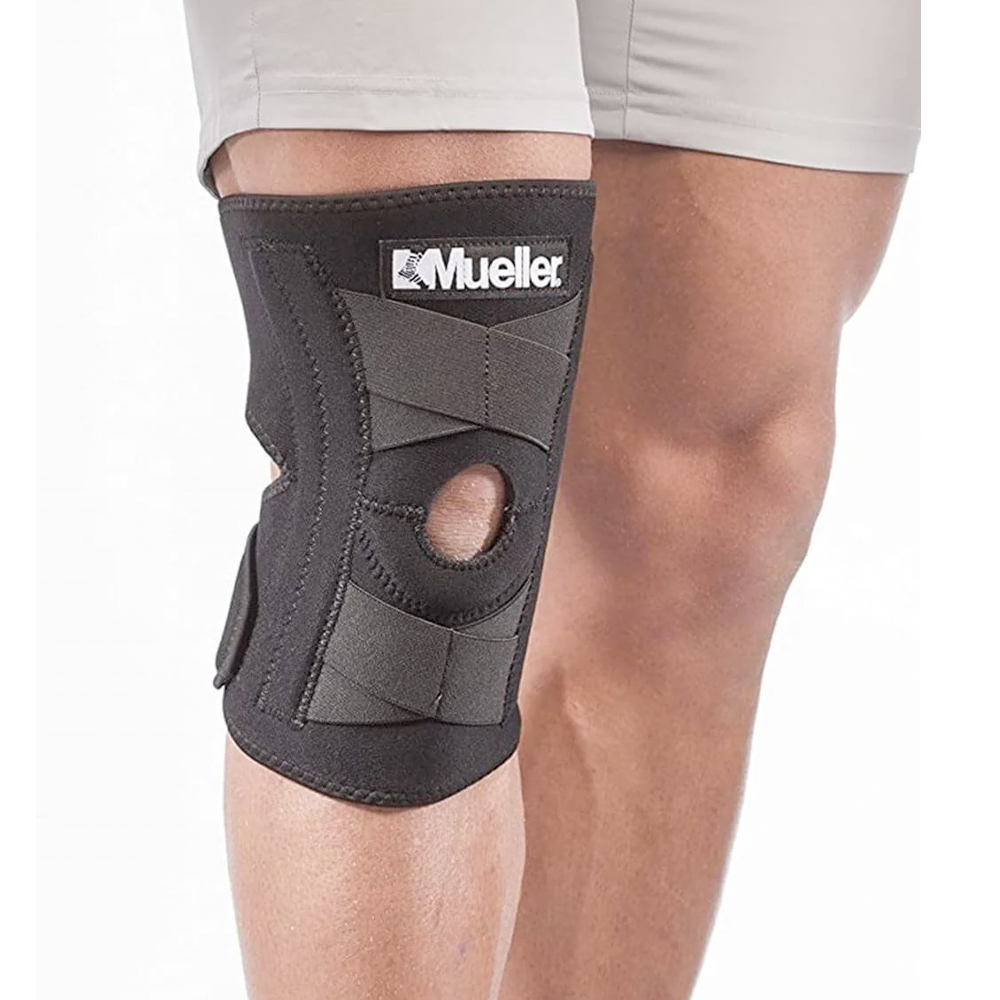 The easy on/off wraparound Mueller SELF-ADJUSTING Knee Stabiliser lets you adjust the fit and compression. The soft neoprene blend retains your body heat to help increase circulation during activity and promotes healing. Perforated fabric increases breathability and comfort. Recommended for minor knee sprains, knee strains, and arthritic knee conditions.